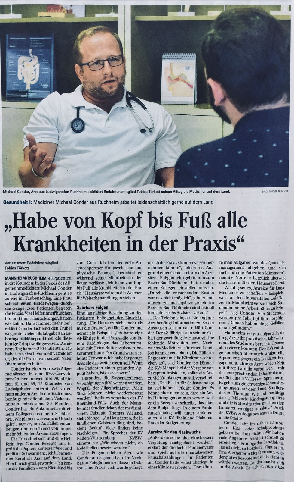 Die Allgemeinmedizin punktet mit einem breitem Spektrum an Krankheitsbildern und einer ganzheitlichen Betreuung der Patienten. Bei Herrn Conder erhält man einen spannenden Einblick in das abwechslungsreiche Tätigkeitsfeld der Allgemeinmedizin. Hier steht der Patient im Fokus.