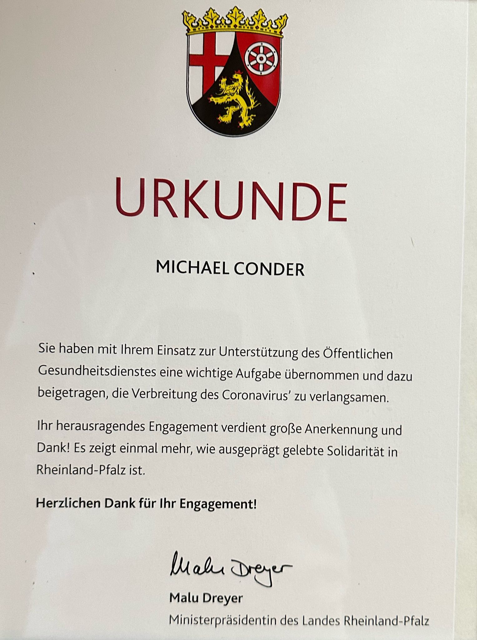 Dr. Conder ist ein ausgezeichneter Hausarzt, der sich sehr bemüht, sein medizinisches Wissen und seine Fähigkeiten an die nächste Generation von Ärzten weiterzugeben. Sein Motto "Mensch im Mittelpunkt" spiegelt sich in seinem Umgang mit den Patienten und auch seiner Lehre wider.